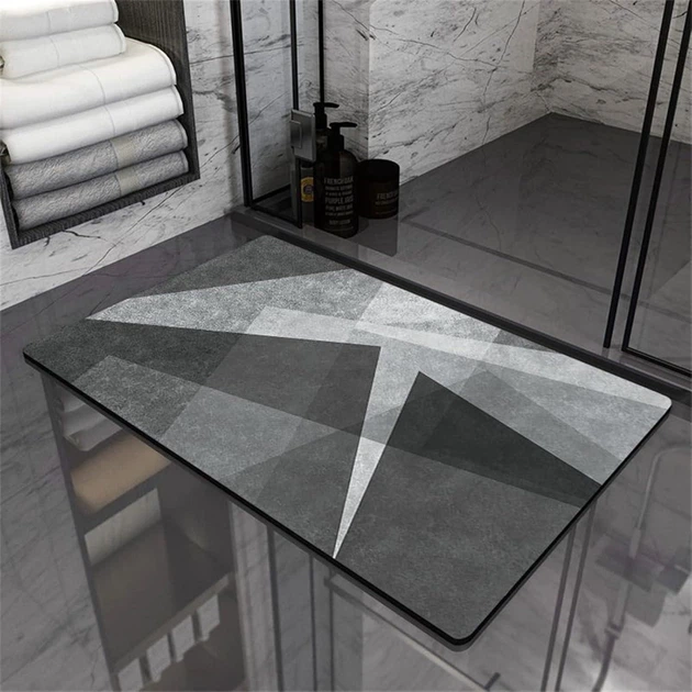 Килимок діатомітовий суперпоглинаючий Геометрична абстракція ICof 89х59 см для ванної коридору кухні кімнати сірий (R051508)