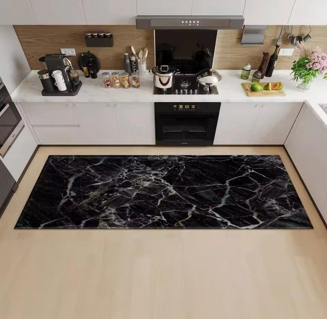 Килимок діатомітовий для кухні/ванної 160х50 см Marmur PREMIUM антиковзкий водопоглинаючий Чорний камінь