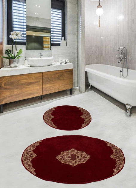 Набір килимків для ванної кімнати з гіпюром Diva Nice Gold 60*100+50*60 Бордовий (11007271)