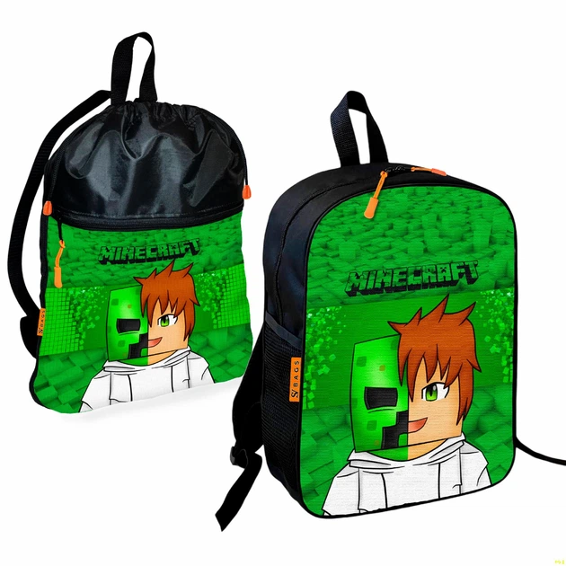 Рюкзак дитячий шкільний 36х27см + Сумка для взуття спортивної форми Майнкрафт "Minecraft" рюкзак-мішок 43х32см з розширюваль