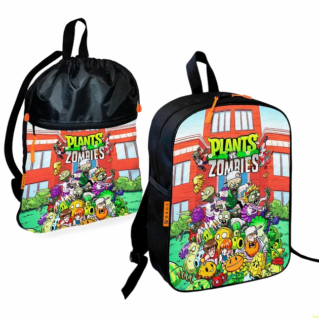 Рюкзак дитячий шкільний 36х27см + Сумка для взуття спортивної форми Рослини проти Зомбі рюкзак-мішок 43х32см з розширювальни