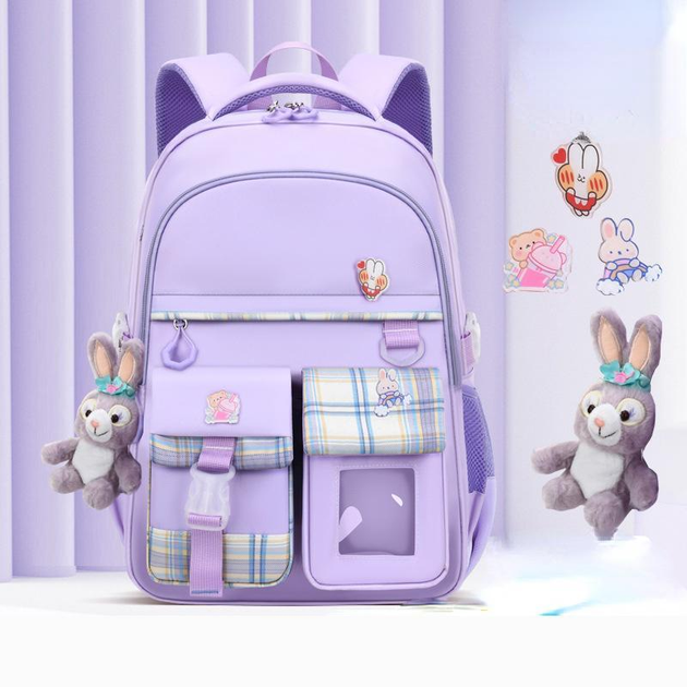 Дитячий рюкзак для дівчинки, стильний портфель для школи CuteRoom З 72832 з брелоком, фіолетовий