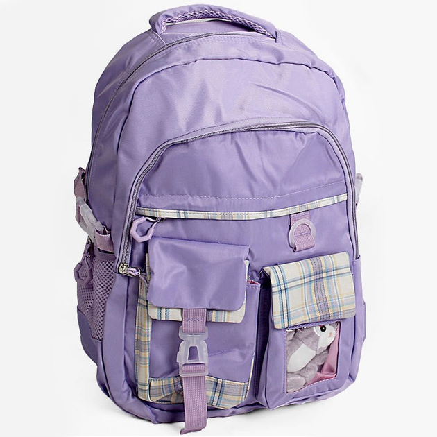 Стильний рюкзак для дівчинки 45 см — шкільний, зі значками, брелоком і світловідбивачі