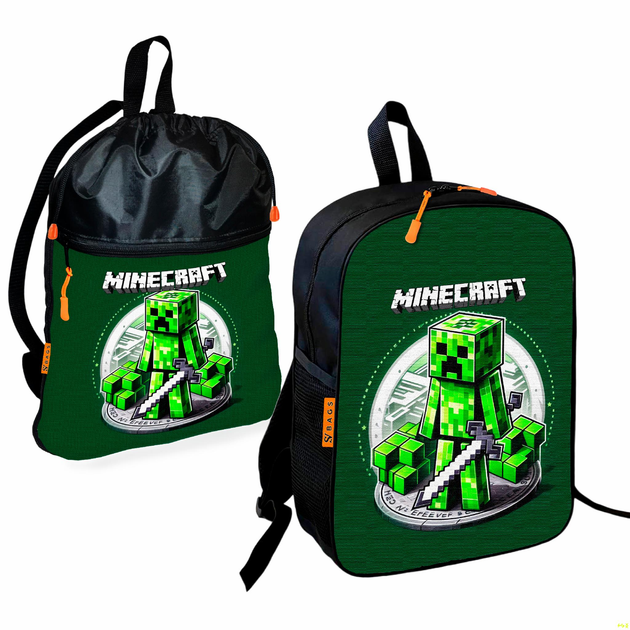 Рюкзак дитячий шкільний 36х27см + Сумка для взуття спортивної форми Майнкрафт "Minecraft" рюкзак-мішок 43х32см з розширюваль