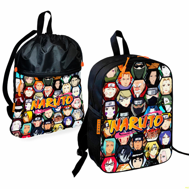 Рюкзак дитячий шкільний 36х27см + Сумка для взуття спортивної форми Аніме Наруто Акацукі рюкзак-мішок 43х32см з розширювальн