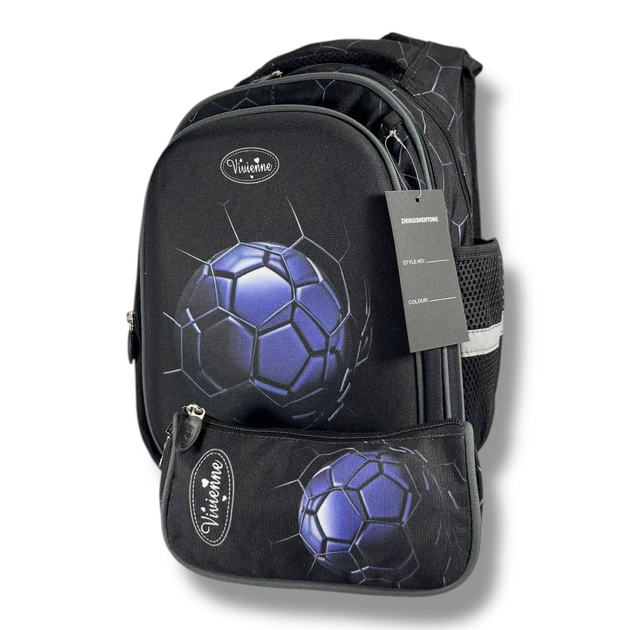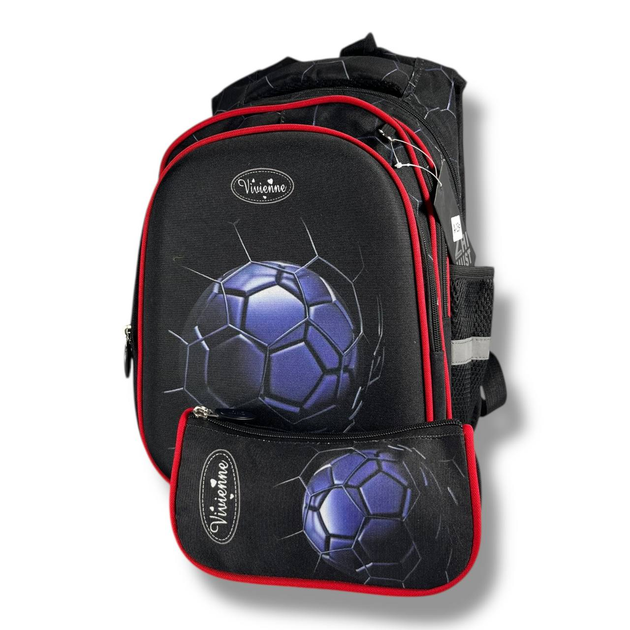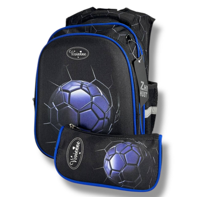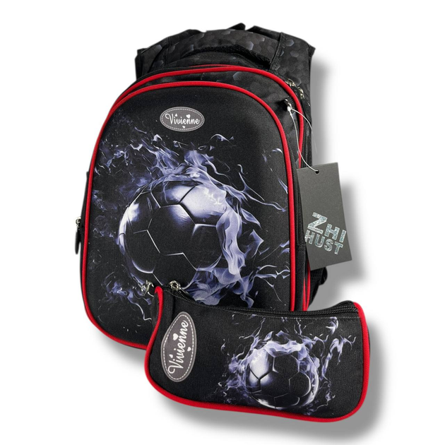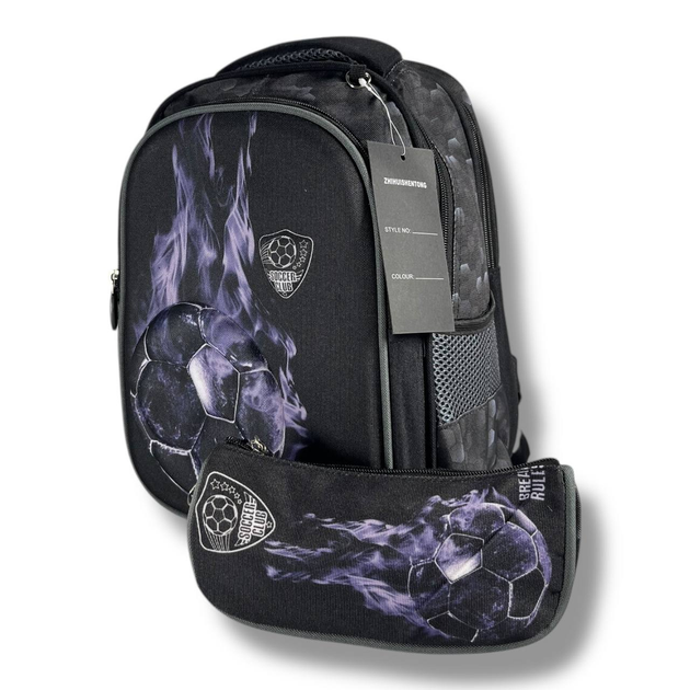 Шкільний рюкзак для хлопчиків 6–9 років, чорний, у комлекті з пеналом, принт М'ячик ZhiHuiShenTong