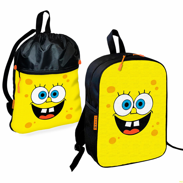 Рюкзак дитячий шкільний 36х27см + Сумка для взуття спортивної форми Губка Боб рюкзак-мішок 43х32см з розширювальним клапаном