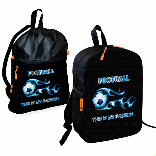 Рюкзак дитячий шкільний 36х27см + Сумка для взуття спортивної форми Футбол рюкзак-мішок 43х32см з розширювальним клапаном дл