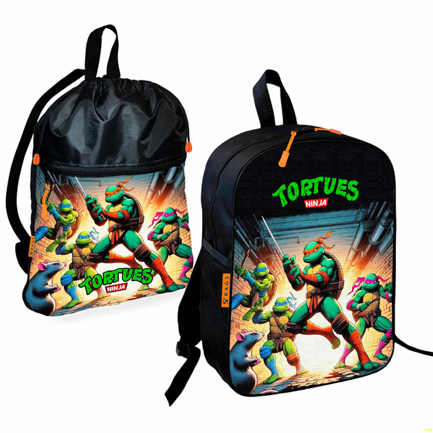 Рюкзак дитячий шкільний 36х27см + Сумка для взуття спортивної форми Черепашки-ніндзя рюкзак-мішок 43х32см з розширювальним к
