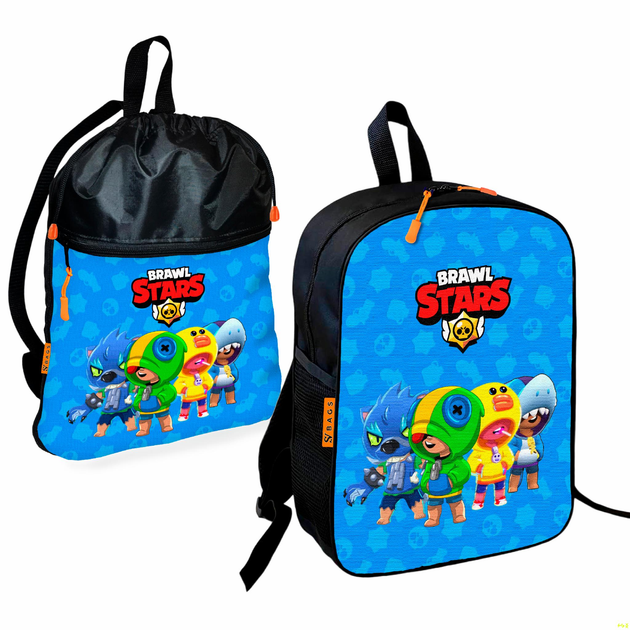 Рюкзак дитячий шкільний 36х27см + Сумка для взуття спортивної форми Бравл Старс "Brawl Stars" рюкзак-мішок 43х32см з розширю