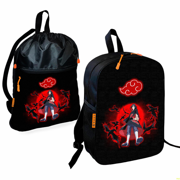 Рюкзак дитячий шкільний 36х27см + Сумка для взуття спортивної форми Аніме Наруто Акацукі рюкзак-мішок 43х32см з розширювальн