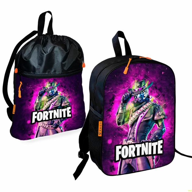 Рюкзак дитячий шкільний 36х27см + Сумка для взуття спортивної форми Фортнайт «Fortnite» рюкзак-мішок 43х32см з розширювальни
