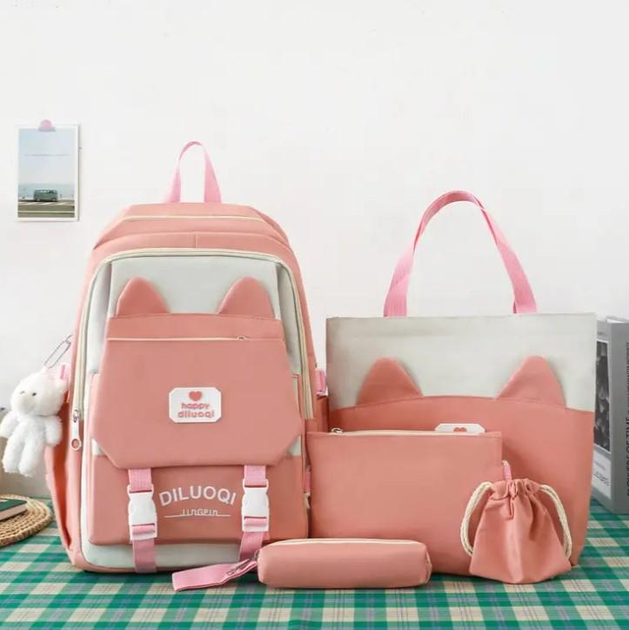 Стильний рюкзак та аксесуари для дівчаток Набір 5в1 ідеально підходить для школи, міста або подорожей 8123-3 Pink
