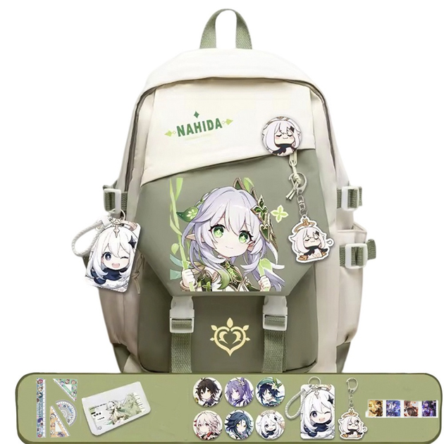 Шкільний рюкзак Nahida Геншин з аксесуарами Зелений (28060)