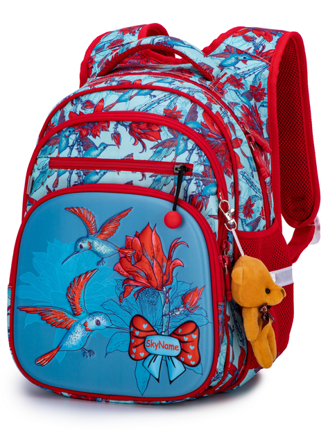 Шкільний рюкзак, ортопедична спинка, червоний з блакитним Winner One/SkyName