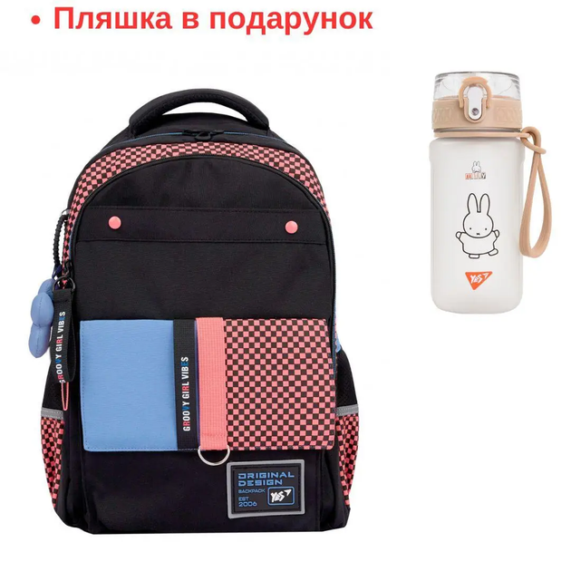 Рюкзак шкільний YES Groovy Girl TS-48 Чорний + Пляшка для води Yes Miffy 500 мл — Подарунковий набір
