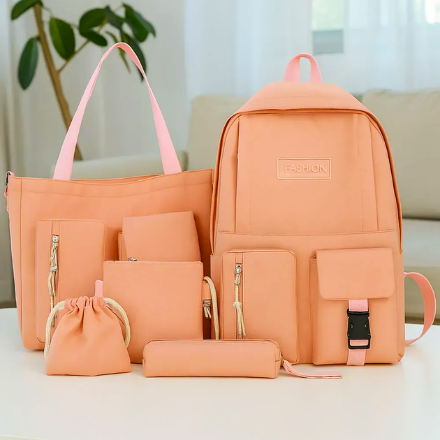 Рюкзак міський з сумками 5в1, 42x30x11см, Розовий / Дитячий портфель (L)