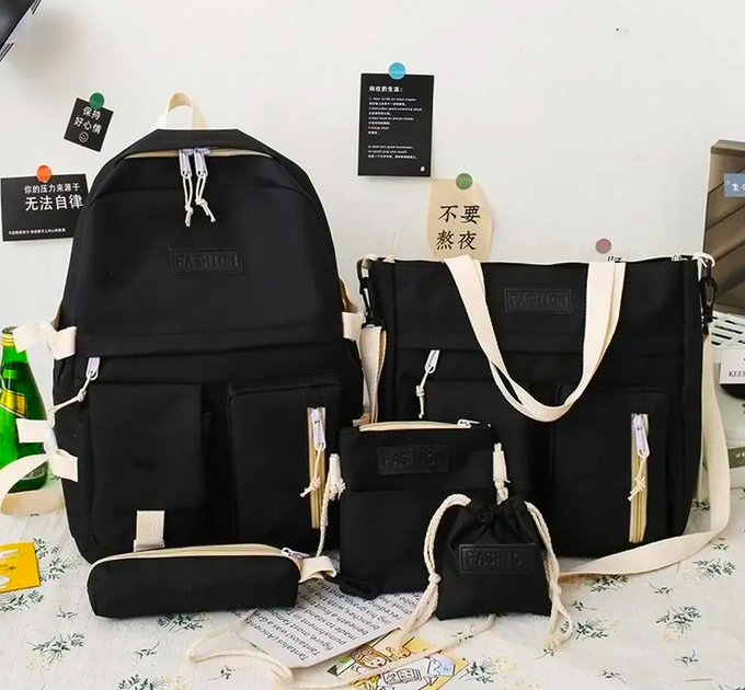 Рюкзак, міський, підлітковий з сумками 5в1, 42x30x11см, Чорний / Дитячий портфель (L)