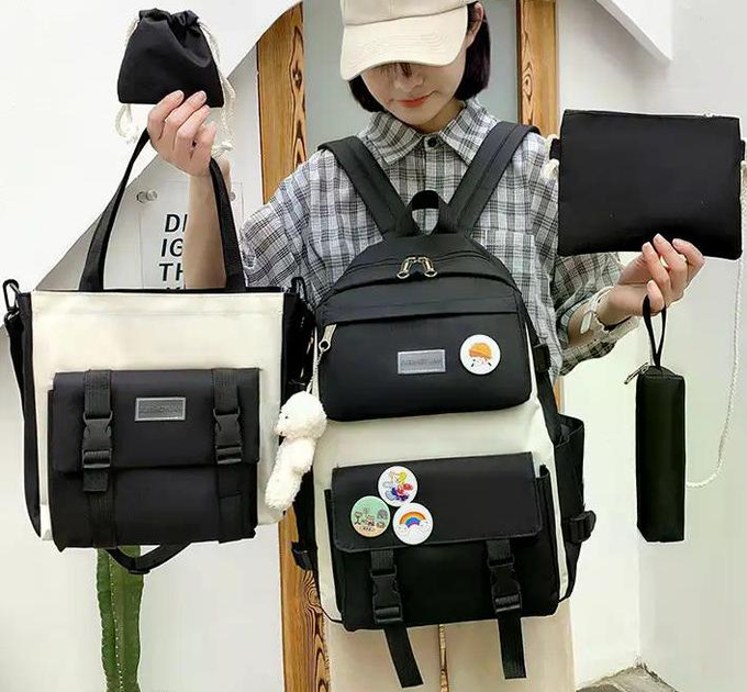 Дитячий рюкзак 5 в 1 (рюкзак 42х30х12см; сумка 29х28х7см; клатч 15x15см; мішечок 12x11см; пенал 20x8см) + брелок, Чорний