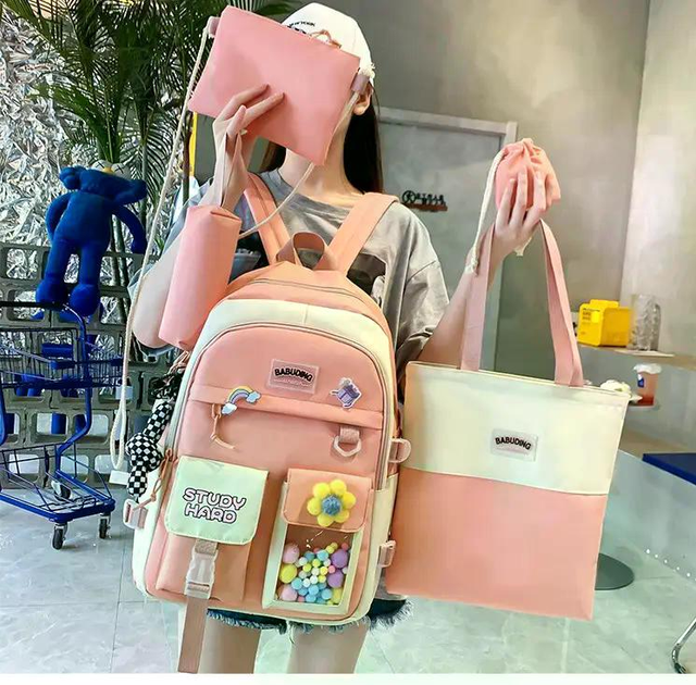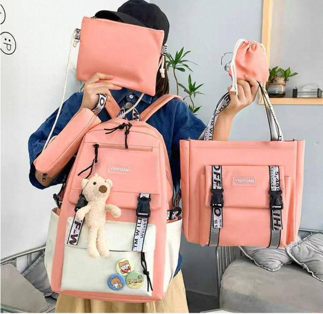 Дитячий рюкзак 5 в 1 (рюкзак 42х30х12см; сумка 29х28х7см; клатч 15x15см; мішечок 12x11см; пенал 20x8см) + брелок, Рожевий