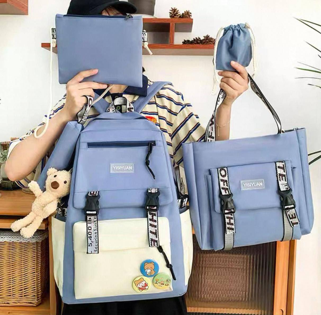 Дитячий рюкзак 5 в 1 (рюкзак 42х30х12см; сумка 29х28х7см; клатч 15x15см; мішечок 12x11см; пенал 20x8см) + брелок, Блакитний