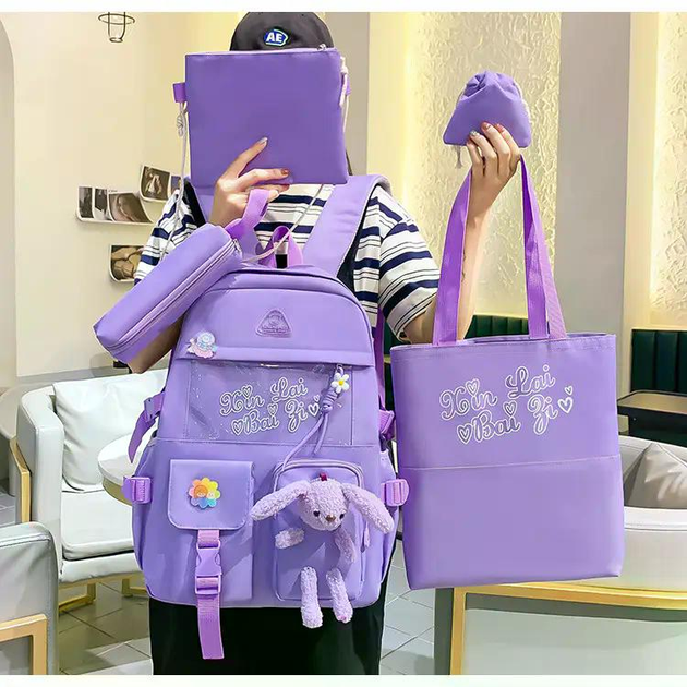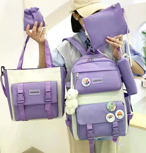 Дитячий рюкзак 4 в 1 (рюкзак 39х29х10 см; сумка 28х27х6 см; клатч 19,5х14 см; пенал 18х7 см) + брелок, Бузковий