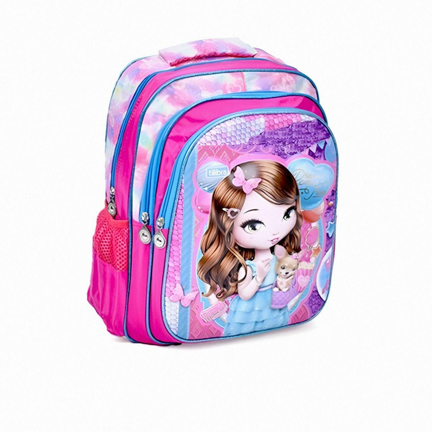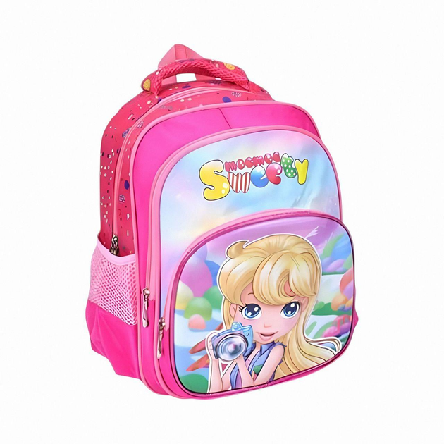 Дитячий рюкзак FG240502003A з двома відділеннями та зовнішньою кишенею, рожевий з принтом дівчинки