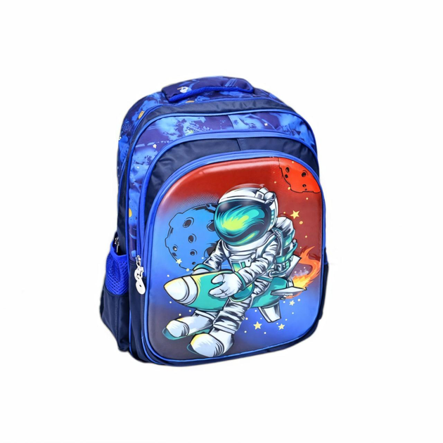Дитячий рюкзак FG240502004A з трьома відділеннями та боковими кишенями, синій з принтом, розмір 392814 см
