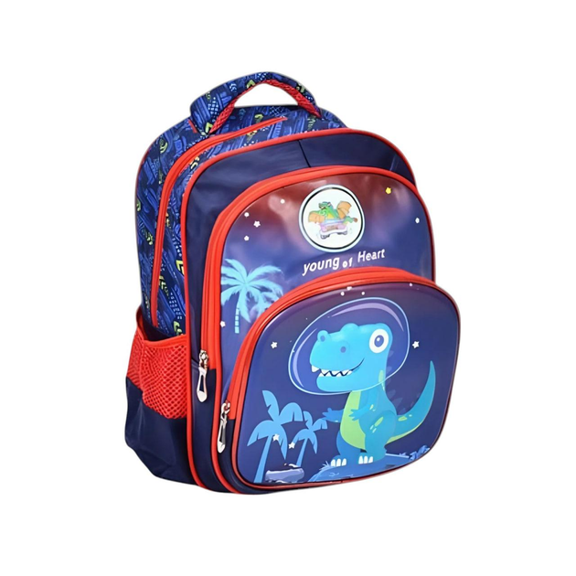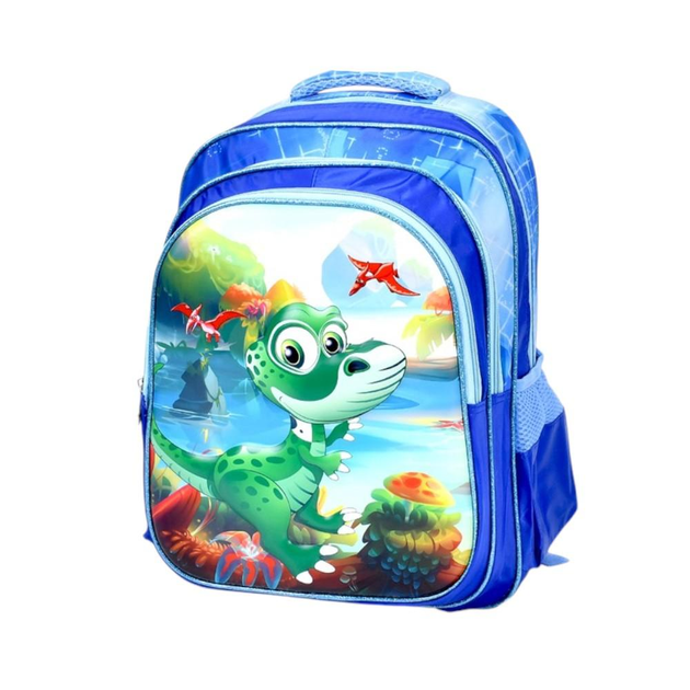 Дитячий рюкзак FG240502003A з двома відділеннями та зовнішньою кишенею, синій з принтом динозавру