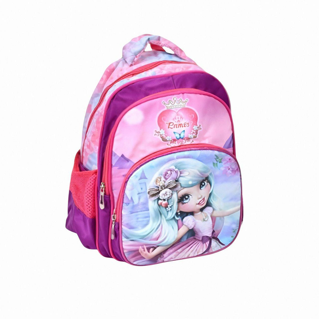 Дитячий рюкзак FG240502003A з двома відділеннями та зовнішньою кишенею, рожевий з принтом принцеси