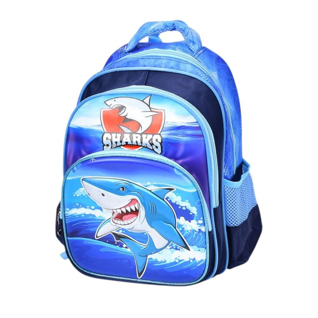 Дитячий рюкзак FG240502003A з двома відділеннями та зовнішньою кишенею, синій з принтом акули