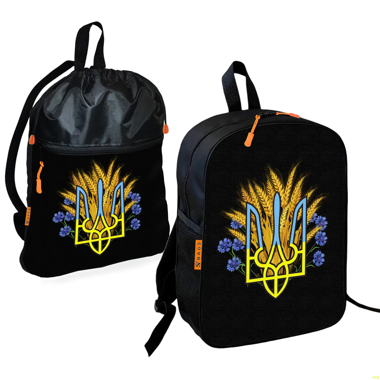 Шкільний рюкзак дитячий Тризуб Україна + Сумка для взуття спортивної форми рюкзак-мішок хлопчикові (01854)