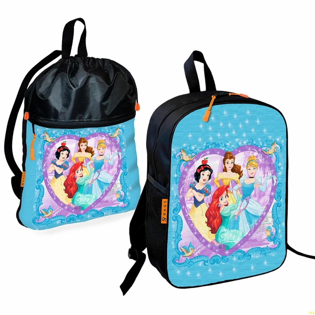 Рюкзак дитячий шкільний 36х27см + Сумка для взуття спортивної форми Принцеси Діснея рюкзак-мішок 43х32см з розширювальним кл
