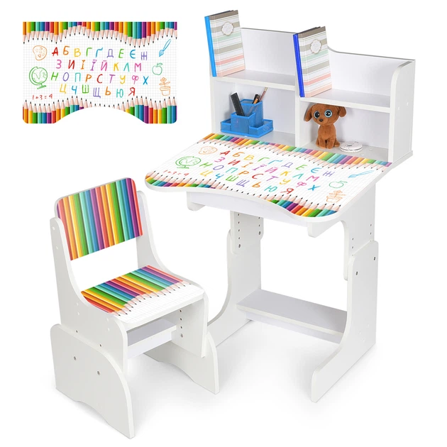 Дитяча парта-трансформер Bambi N 2071-19A-1 (регульована висота, стільчик, надбудова для книг, ящик під стільницею для канцт