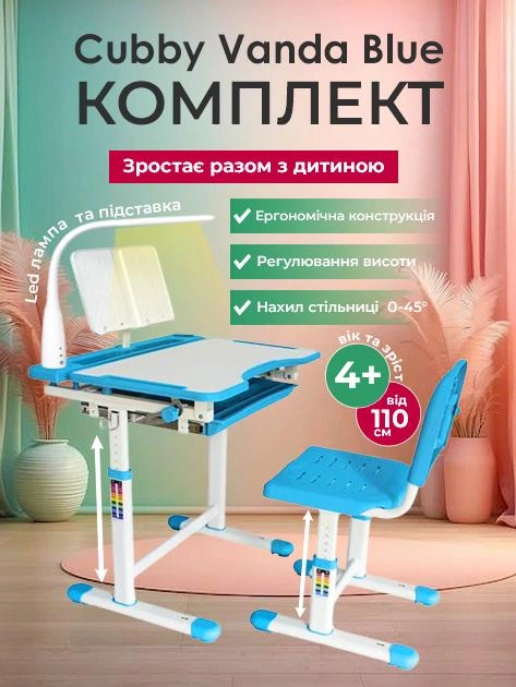 Комплект парта і стілець-трансформери Cubby Vanda Blue