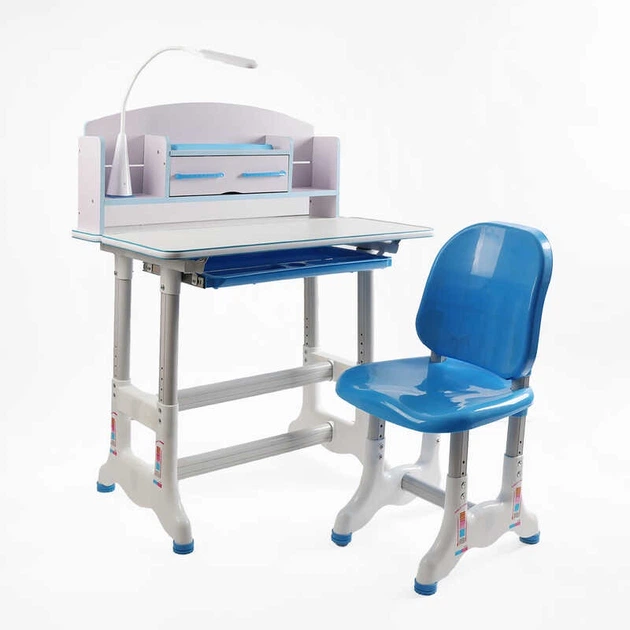 Парта дитяча зі стільчиком BL-14194 колір синій, з поліцями, регульована висота та нахил, з лампою, в коробці
