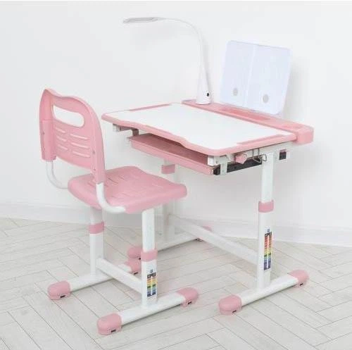 Парта з регулюванням висоти, підставкою для книги і лампою, рожева (M 4428-8)