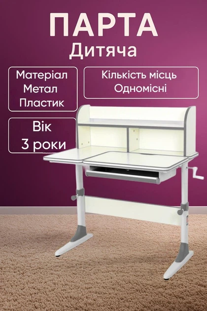 Парта дитяча Bambi M 4804-11 для дому, сіра, метал/пластик, одномісна