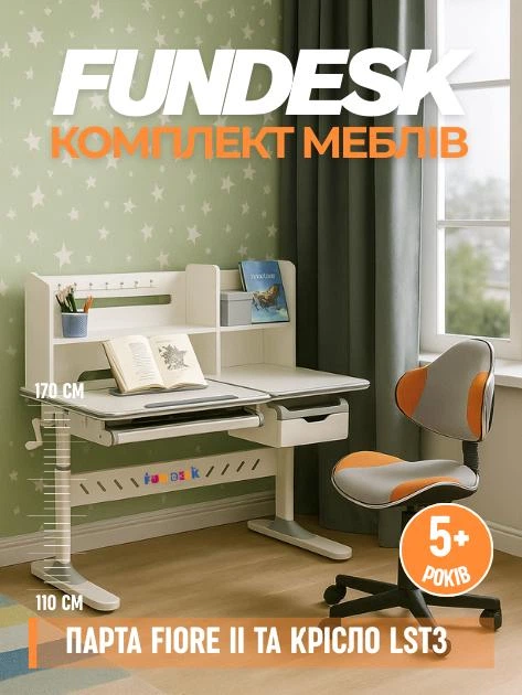 Комплект парта-трансформер Fundesk Fiore Grey + крісло Cubby Magnolia Grey (25154743-5765590)