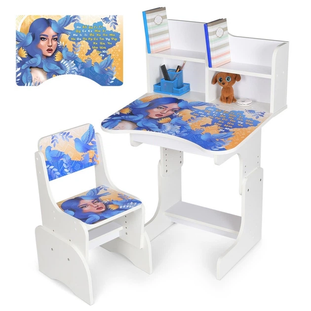 Дитяча регульована парта зі стільчиком (парта-розтинка з полицями, дерев'яна) (ПШ 012) для хлопчика та дівчинки