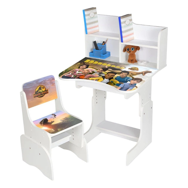Дитяча парта N 2071-14-1 "JURASSIC WORLD" з таблицею множення та стільчиком, біла