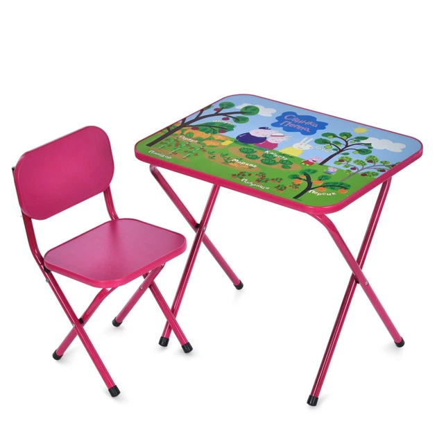 Складаний дитячий столик із стільчиком зелений для ігор та творчості компактна парта з малюнком Пеппи (559274)
