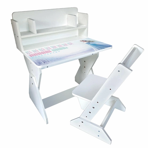 Дитяча парта зі стільчиком Українські янголята П02 з регулюванням висоти, білий колір, малюнок Ельза Холодне серце