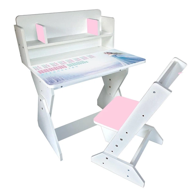 Дитяча парта зі стільчиком Українські янголята П02 з регулюванням висоти, біло-рожевий колір, малюнок Ельза Холодне серце