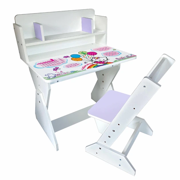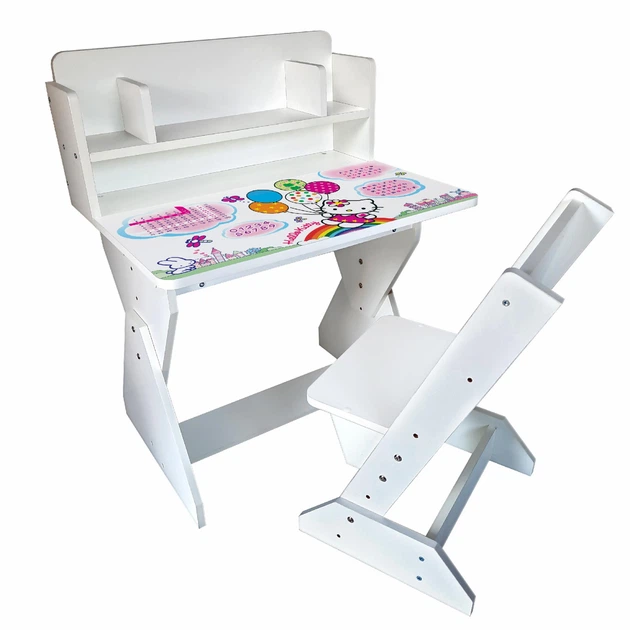 Дитяча парта зі стільчиком Українські янголята П02 з регулюванням висоти, білий колір, малюнок Hello Kitty