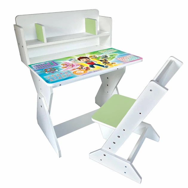 Дитяча парта зі стільчиком Українські янголята П02 з регулюванням висоти, біло-салатовий колір, малюнок Щенячий патруль