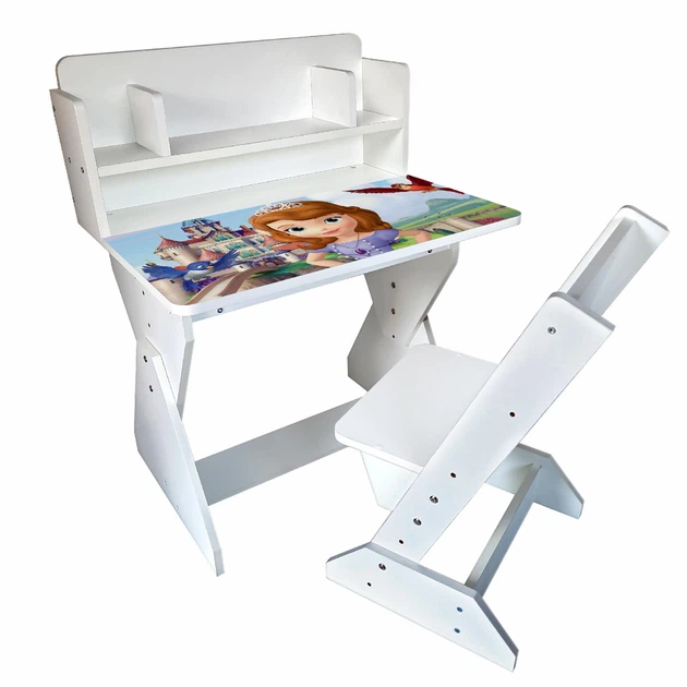 Дитяча парта зі стільчиком Українські янголята П02 з регулюванням висоти, білий колір, малюнок Софія Прекрасна