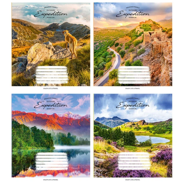 Набір зошитів учнівських Поліграфіст 746 Гірський краєвид 12 аркушів у лінію 32 шт (12Л 746)