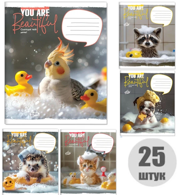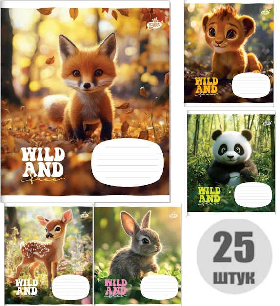 Зошит учнівський 12 аркушів Коса лінія №2547 Свiт звiрят (НАБІР 25 шт.)