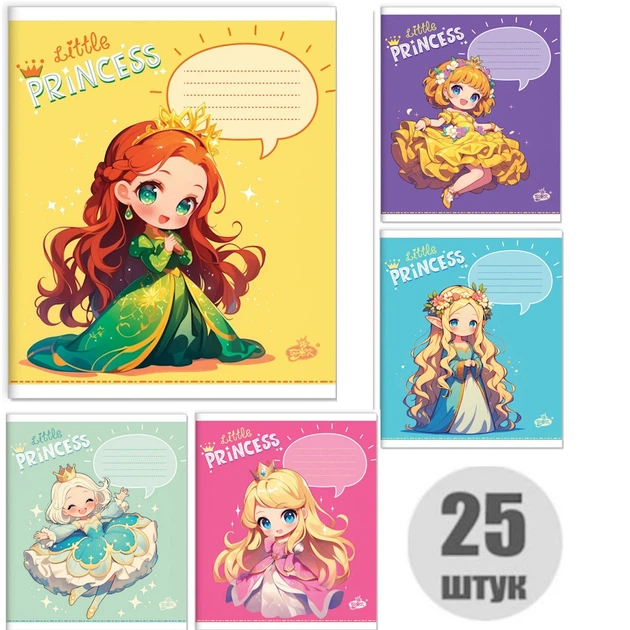 Зошит учнівський 12 аркушів клітинка ТВ-107 №2538 Принцеса (набір 25 штук)